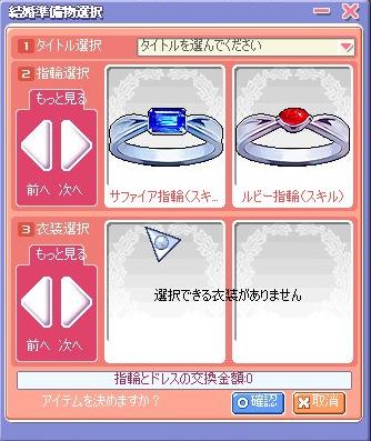 んで結婚準備クエとかいうのを終わらせて指輪とドレス選択画面になるんですけども